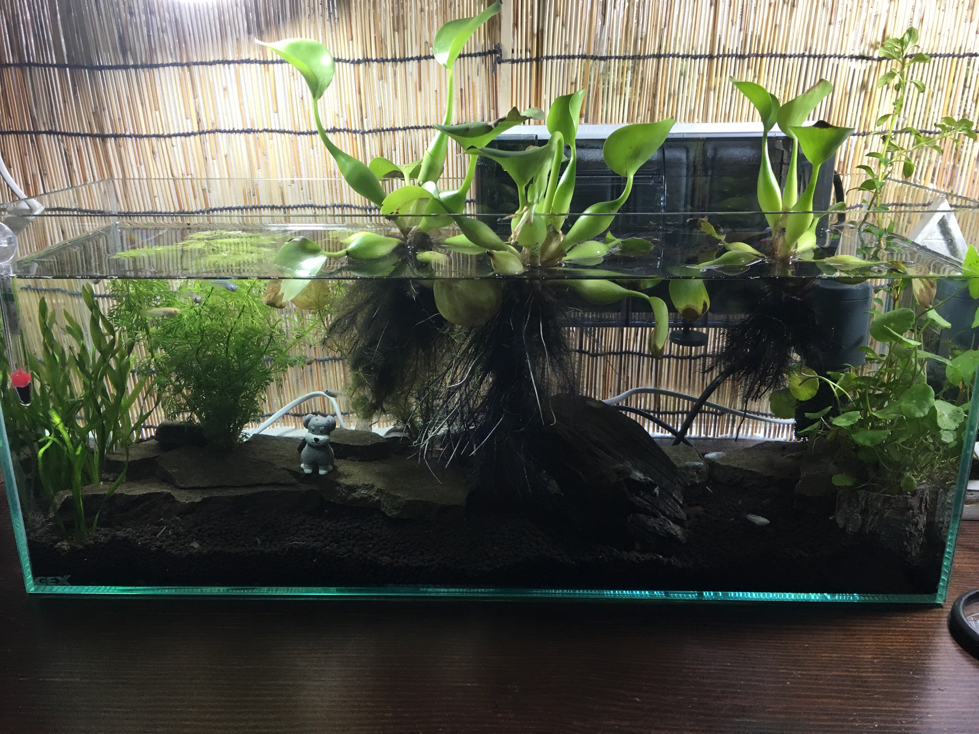 立ち上げた水槽に、今度は生体(めだか)を入れてみる。